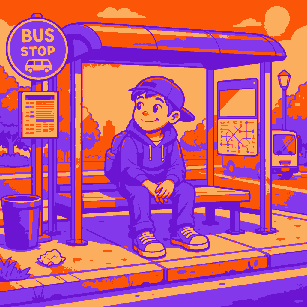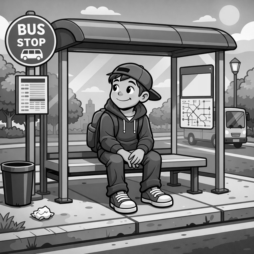 I generated this cartoon image of a boy at a bus stop. For simplicity’s sake, we’ll be using a greyscale version for our calculations.