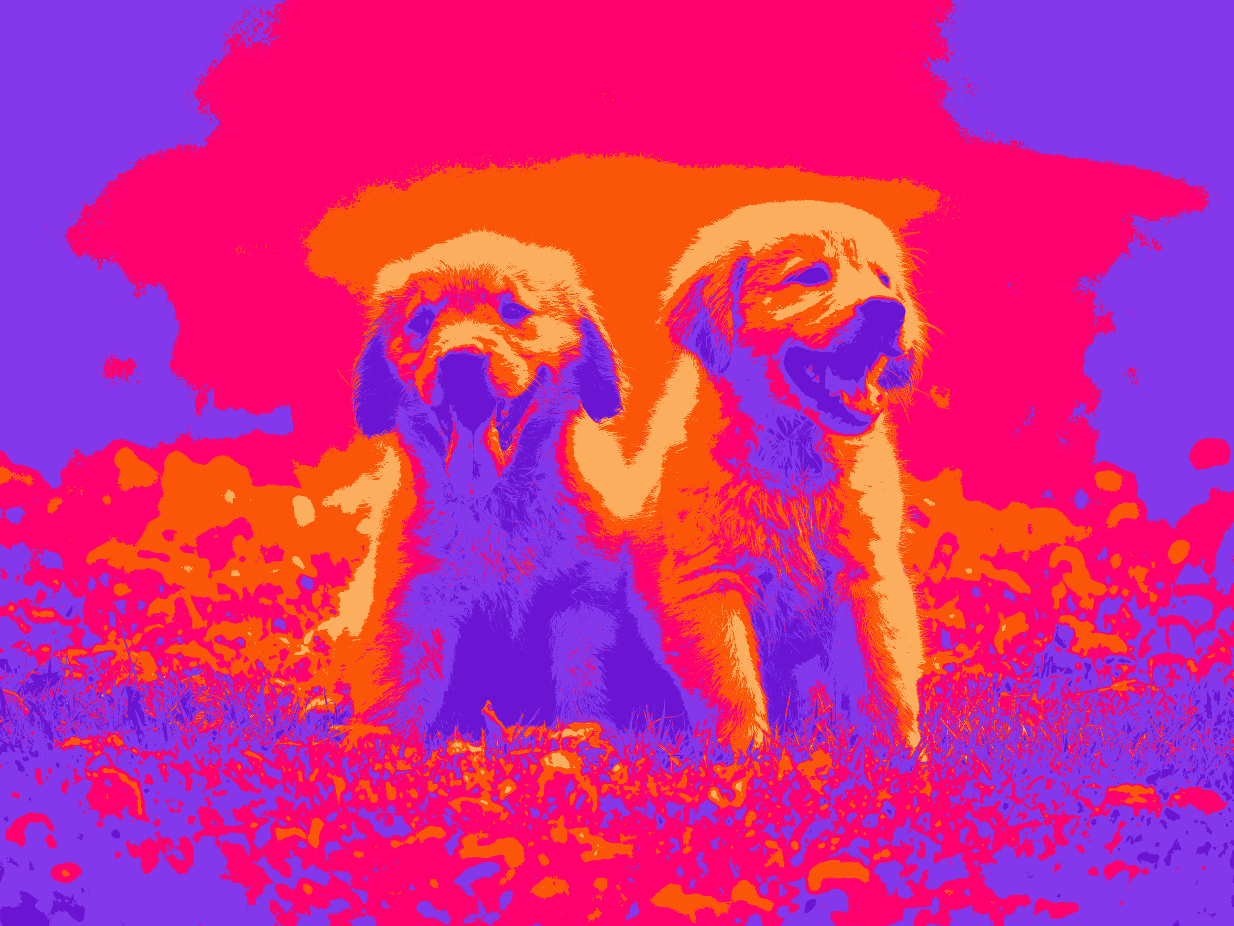 Photos don’t seem to work as well due to their rich and nuanced colour palette. Nonetheless, here are some cute puppies now as pop art.