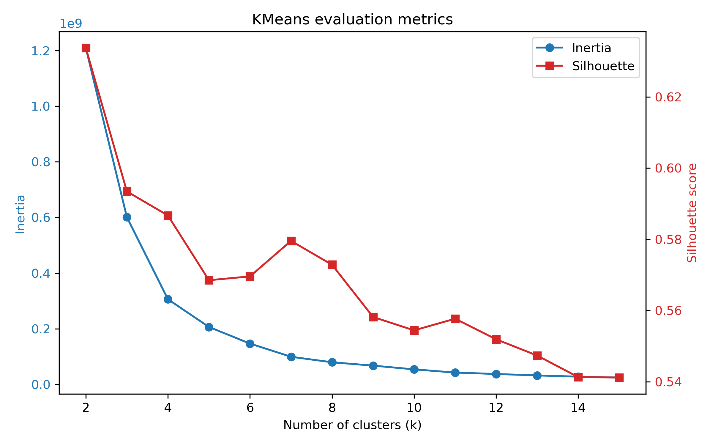 To optimise our clusters, we’ll use both inertia and silhouette scores.